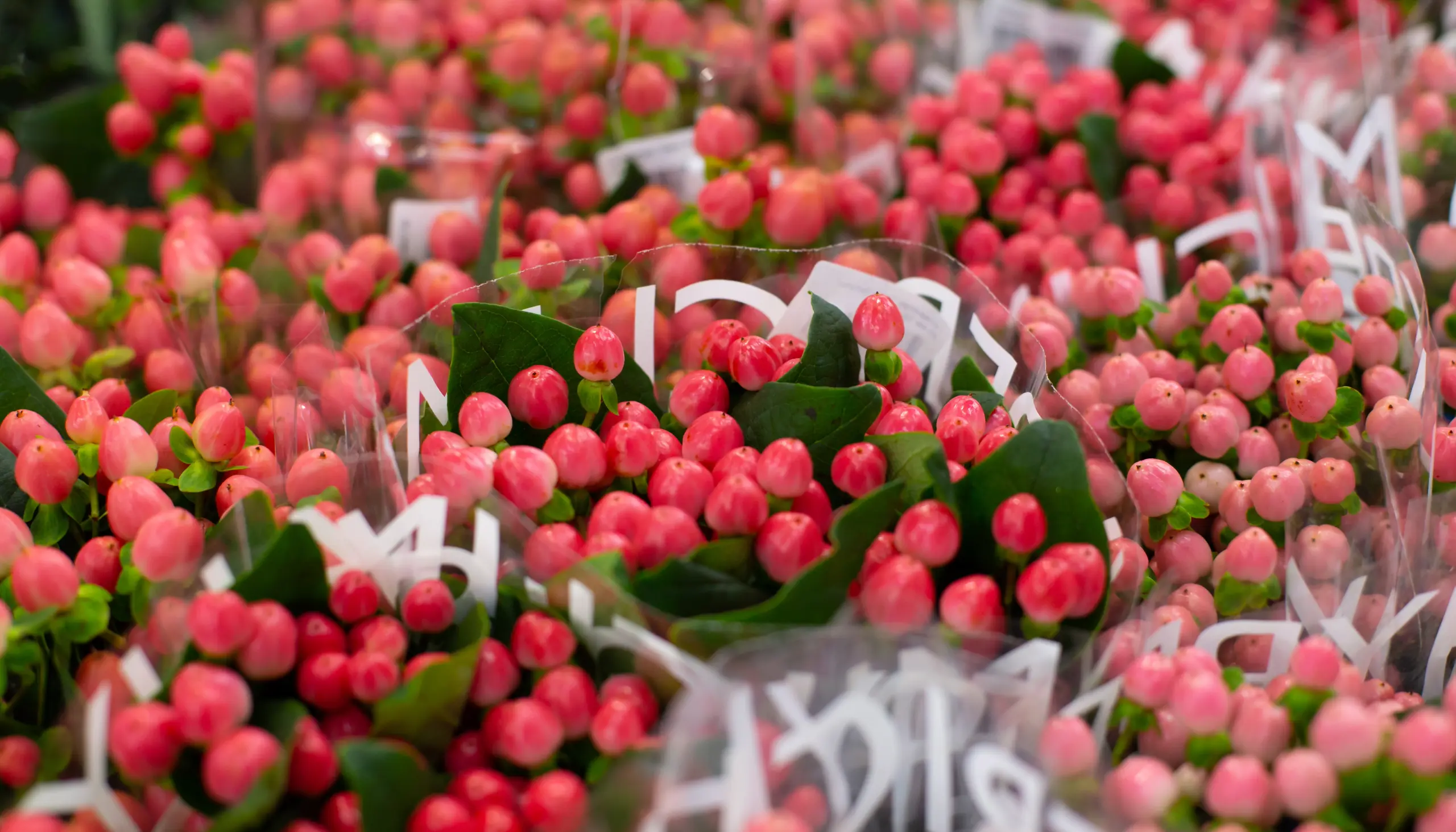 Discover our new Hypericum from Ecuador, now available in white, green, peach, and pink. These colourful berries add texture and interest to any bouquet or arrangement, making them a versatile choice. With strong stems and excellent vase life, they offer reliable performance across a wide range of designs.